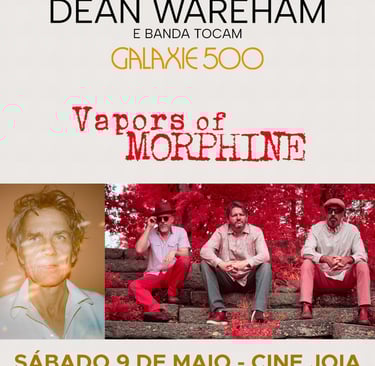 São Paulo/SP recebe no dia 9 de maio (sábado), no Cine Joia, um encontro de duas trajetórias fundamentais do rock alternativo norte-americano. Vapors of Morphine, o legado do lendário Morphine e Dean Wareham, em um set especial dedicado ao Galaxie 500. A produção é da Maraty e os ingressos estão à venda no site da Fastix.