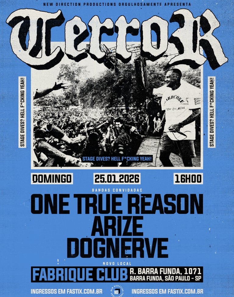 Terror, de Los Angeles (EUA), sempre foi sinônimo de hardcore potente, com mensagens diretas, riffs e breakdowns alucinantes. Desde sua formação, em 2002, a banda demonstra um nível de dedicação inabalável e inspiradora dentro da cena mundial e enfim retornam ao Brasil, em janeiro de 2026, com dois shows: em São Paulo, dia 25/01, no Fabrique Club (trocou de local após sold out), e dia 24/01 em Curitiba, no Belvedere.