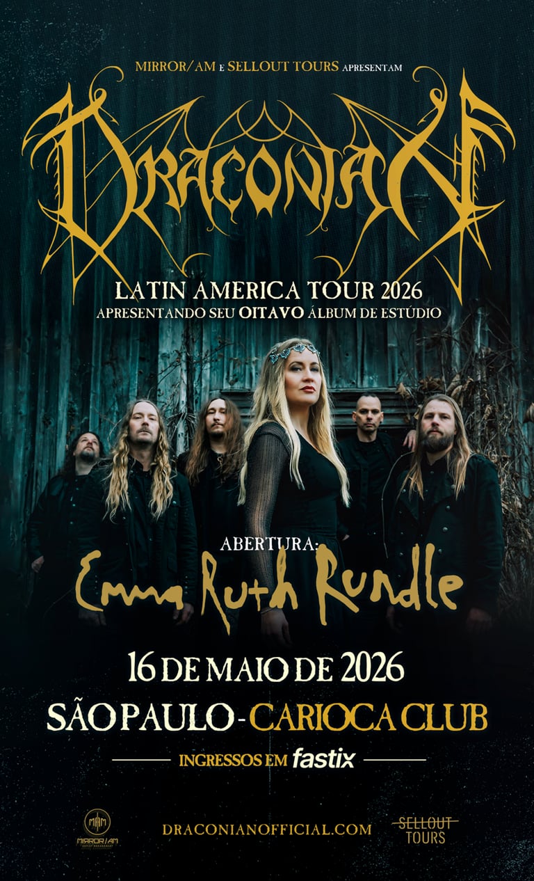 Após um show sold out em 2023 na capital paulista, o sexteto sueco de gothic/doom metal Draconian retorna a São Paulo/SP no dia 16 de maio de 2026 com seu novo show. A apresentação, no Carioca Club, ocorre no momento em que divulgam o ainda inédito oitavo álbum de estúdio, previsto para o primeiro semestre de 2026. A realização é da Mirror/AM e Sellout Tours.