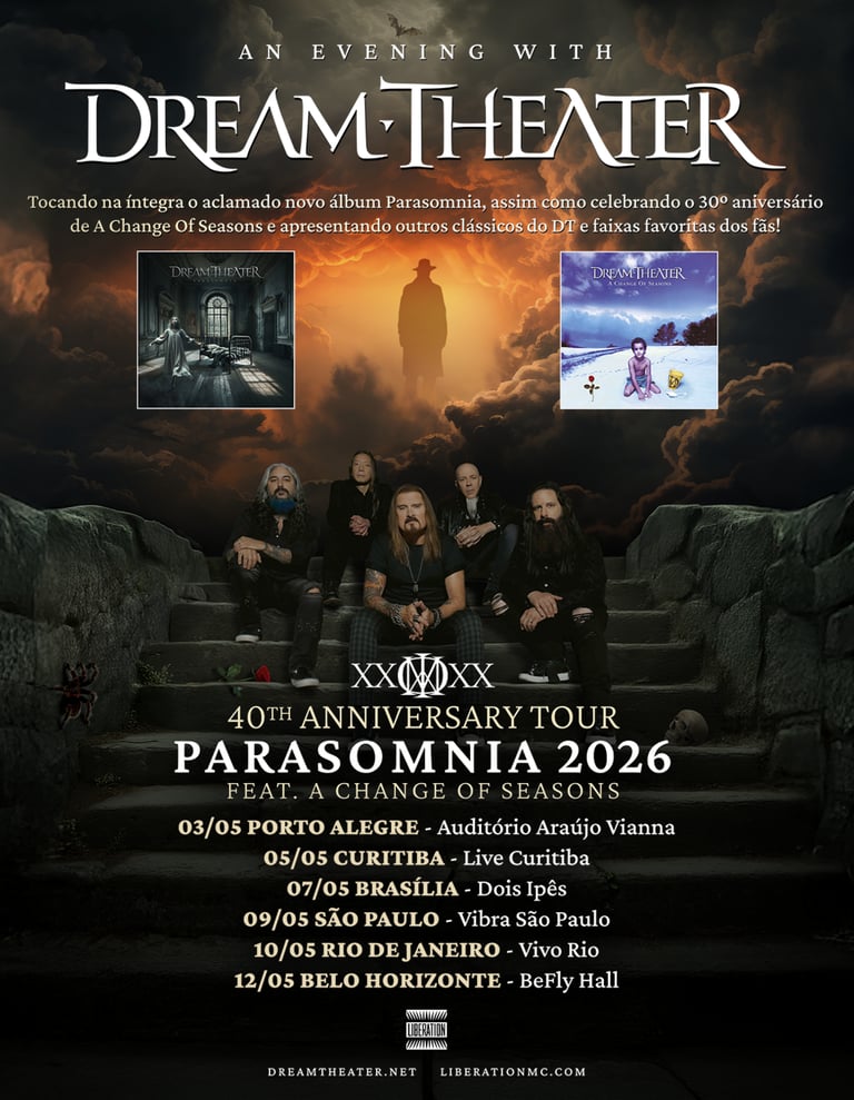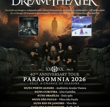 Com milhões de discos vendidos, mais de um bilhão de streams e uma carreira marcada por feitos históricos — como o Grammy® por “The Alien” e clássicos que figuram entre os maiores álbuns da música pesada — o Dream Theater segue como referência central do metal progressivo. A banda atualmente reúne James LaBrie, John Petrucci, John Myung e Jordan Rudess novamente ao lado de Mike Portnoy, retomando a formação que moldou alguns dos capítulos mais importantes da discografia.