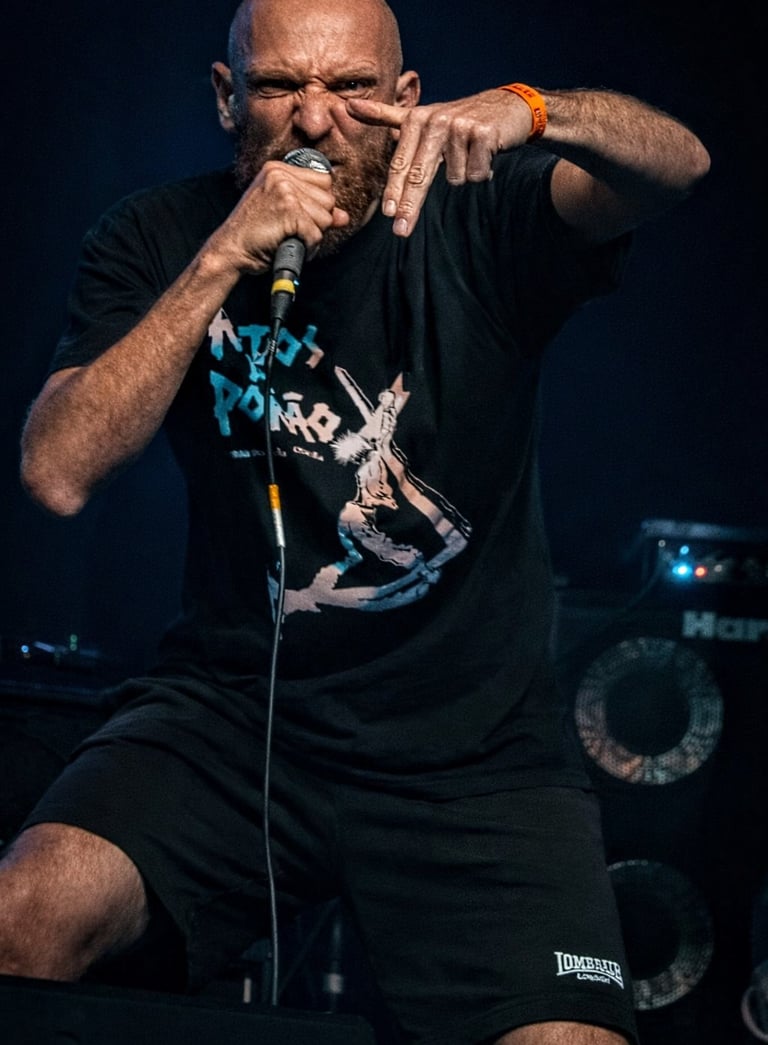 A terceira banda foram os austríacos do Vacunt, uma banda com trajetória de mais de vinte anos e com muito para nos oferecer. Primeira vez que fazem tour no Brasil, tocaram um set curto e direto, com um som puxando o HC Old School, músicas rápidas, muito rápidas, curtas e pesadas que não deixaram a peteca cair antes da banda principal da noite. Destaco o carisma do vocalista Zal, que fez umas aulinhas de português e conseguiu se comunicar no nosso idioma umas quantas vezes entre as músicas, e já que falamos dele falar em português, destaco que no meio pro fim do show fizeram uma versão muito boa de “Periferia” do Ratos de Porão, com direito a um começo meio “sambado”e logo detonando uma versão hardcore Old School do jeito que nos gostamos. Uma grata surpresa, baita show! Quem puder comparecer aos outros shows da tour deles não irá se decepcionar.