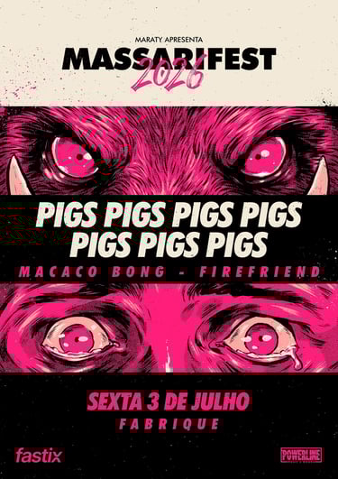 Ingresso online: fastix.com.br/events/massari-fest-com-pigs-pigs-pigs-pigs-pigs-pigs-pigs