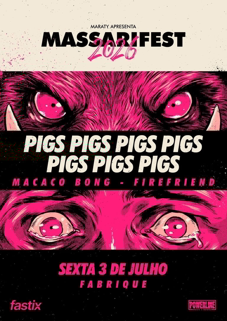 O Massari Fest 2026, com curadoria de Fábio Massari, um dos nomes mais célebres do jornalismo musical brasileiro eternizado pelos anos de VJ da MTV, chega à terceira edição no dia 3 de julho no Fabrique Club, em São Paulo/SP. A atração principal é banda londrina de stoner metal/sludge rock Pigs Pigs Pigs Pigs Pigs Pigs Pigs, geralmente abreviada como Pigs x7.
