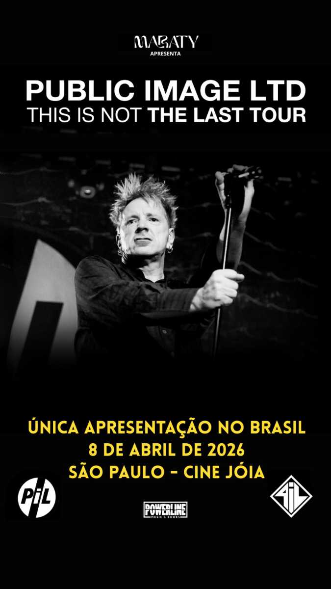 O show ocorre no dia 08/04/2026, quarta feira, no Cine Jóia, a produção é da Maraty/Powerline.