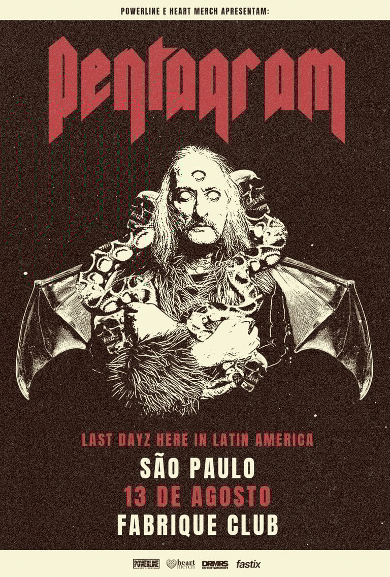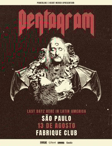 O Pentagram, banda norte-americana formada em 1971 na região de Washington/Alexandria e que viralizou em 2025 com um meme da intensa e hipnótica presença de palco do vocalista do Bobby Liebling, volta a São Paulo no dia 13 de agosto para show no Fabrique Club. A apresentação integra a Farewell Tour, Last Latin American Run 2026, anunciada como a despedida dos palcos latino-americanos. A realização é da Powerline Music & Books e Heart Merch.
