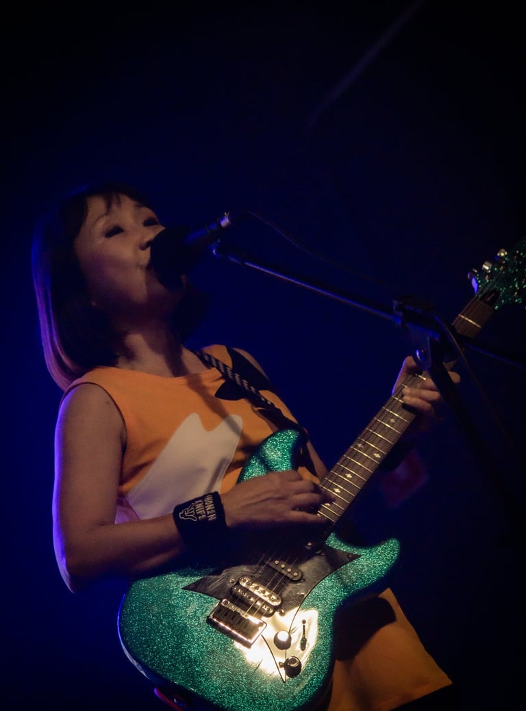 Abriram o set com faixas como: Konnichiwa, passando pela clássica Twist Barbie, um dos pontos altos do show, e que obviamente fazia referência a Kurt, que adorava a canção. Pessoas mais controladas, mais velhas, um público seleto pra uma banda que atravessa 4 décadas de trajetória. Na platéia figuras como Gabriel Thomaz, Cazé Pecini, Edgard Piccoli, olhavam atentamente para o palco. Som tinindo sem nada fora do lugar, enquanto Risa, a baterista, soava firme e trazia mais consistência pra performance do trio. Vestidas com seu típico uniforme com detalhes que possuem as cores azul, rosa e amarelo. Elas encantavam a platéia a cada sorriso.