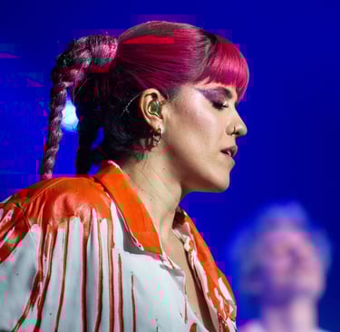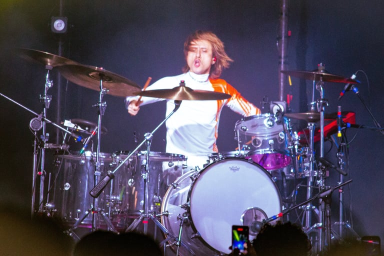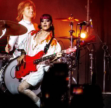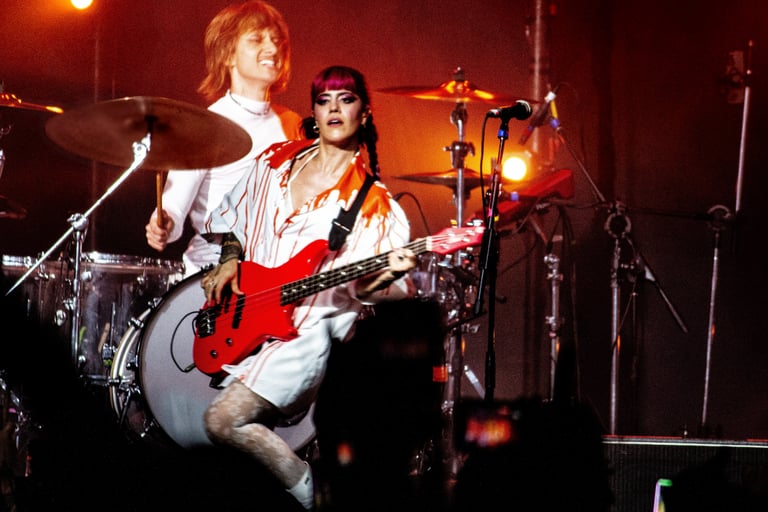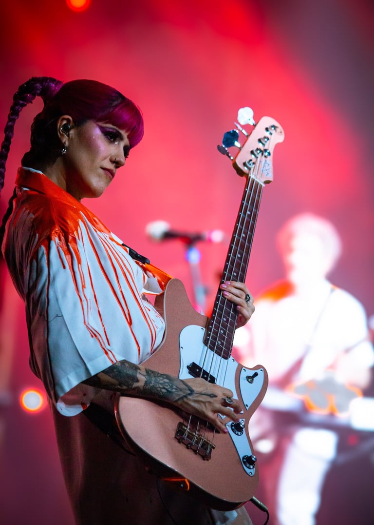 Vale ressaltar o figurino impecável da banda, usufruindo das cores branca e laranja, dando um outro ar pra perfomance do grupo.