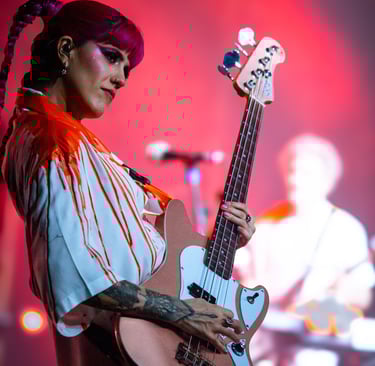 Entre o sorriso deslumbrante de Carol, no canto esquerdo pra quem os via, ela fazia do seu contrabaixo um veículo de comunicação com sua platéia enquanto que Léo Ramos, puxava coros, gritava, e a platéia obviamente respondia não só a altura como muito mais do que eles imaginavam, soando até mais alto que a banda no palco, o público se esbaldava.