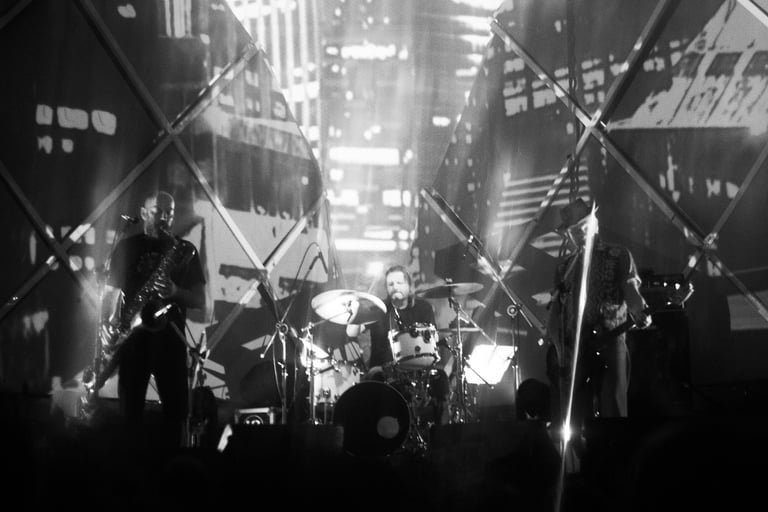 A casa foi enchendo até ficar um ambiente de nítida ansiedade pra ver o prato principal do baile, o clima foi se formando e até as projeções (impecáveis!) foram mudando dando um ar mais misterioso, evocando o espírito do que veríamos a seguir. Sobem ao palco Dana Colley, Tom Arey e Jeremy Lyons, ao som de gritos e aplausos do público que a esta altura já tinha enchido completamente a casa.